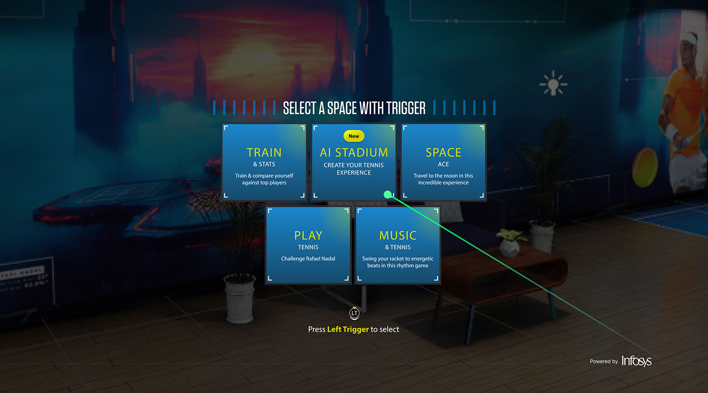 An immersive 3D tennis experience for the Australian Open. Users explore a virtual stadium they can change with a simple voice prompt — powered by real-time skybox tech and speech-to-text commands in VR.