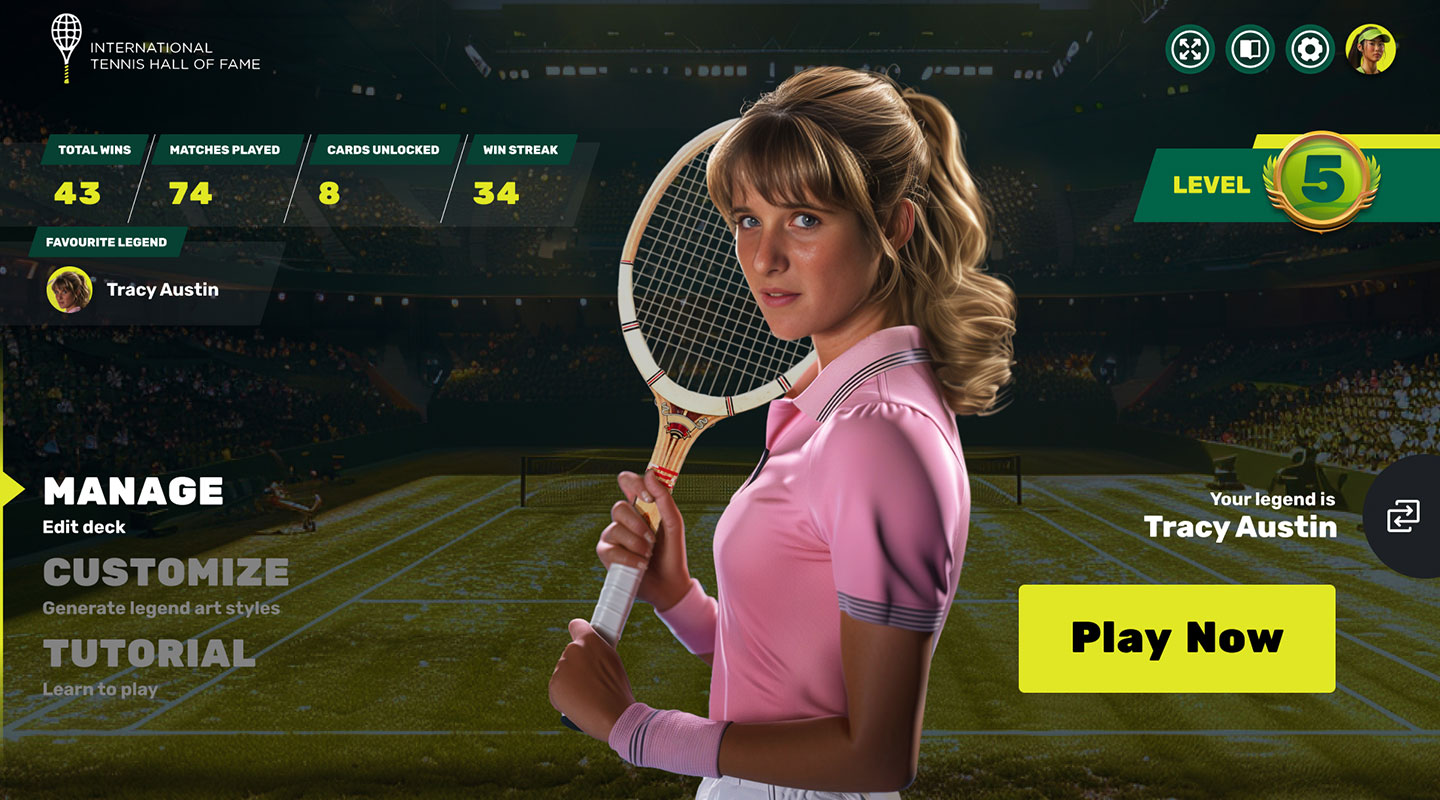 Using a points based system mirroring tennis, Famers Duel features Hall of Famers Leander Paes, Gigi Fernandez, Michael Chang, Stan Smith, and Tracy Austin. Players use strategy, power-ups, and signature shots inspired by each legends’ skills. The project built on our innovation delivery for International Tennis Hall of Fame, following the development of their Metaverse museum in 2023,
